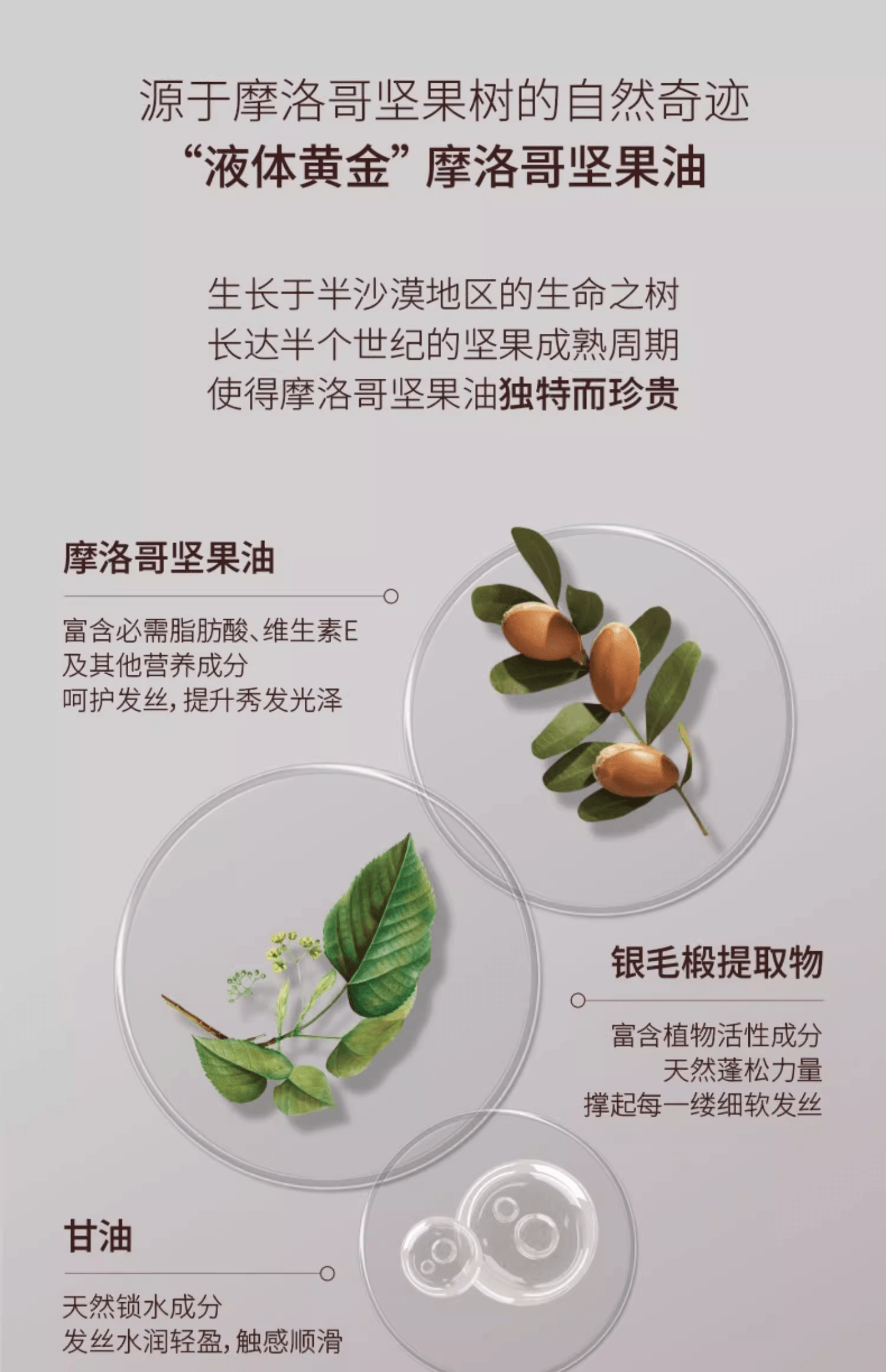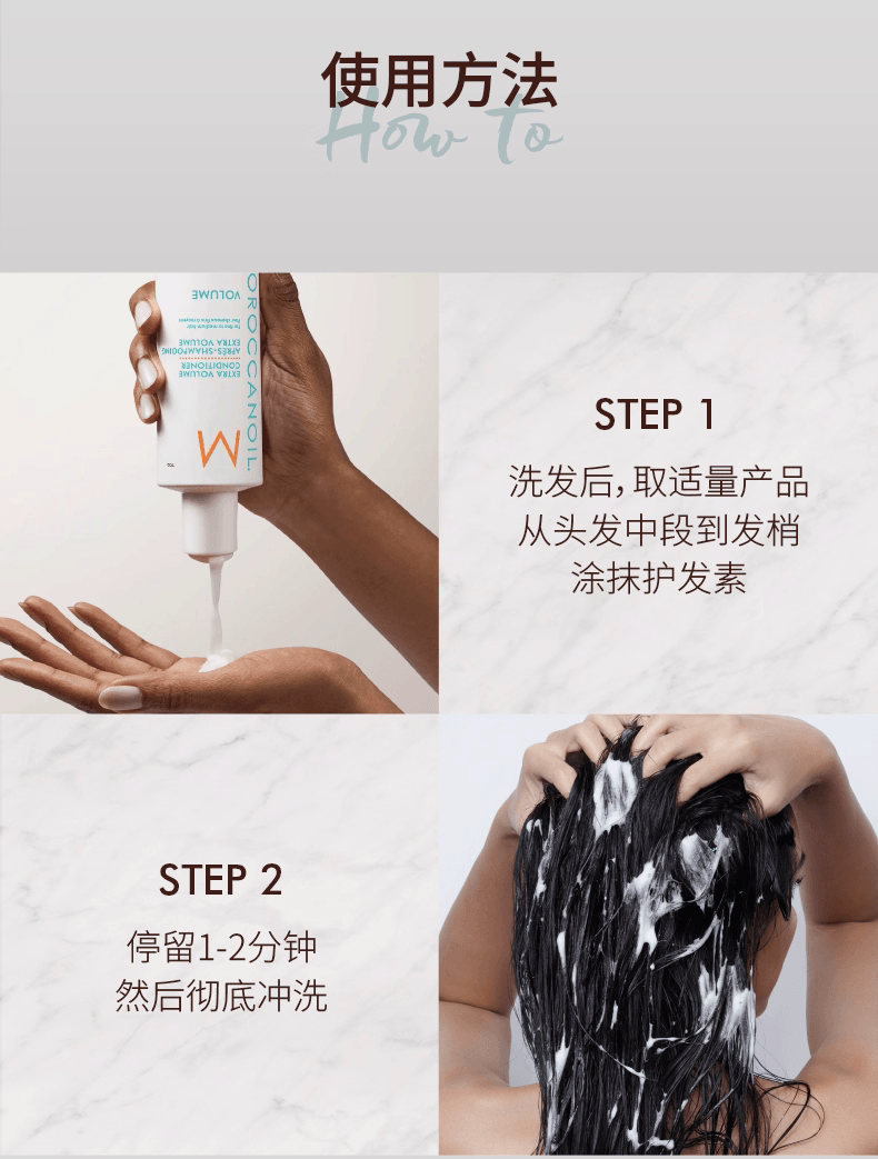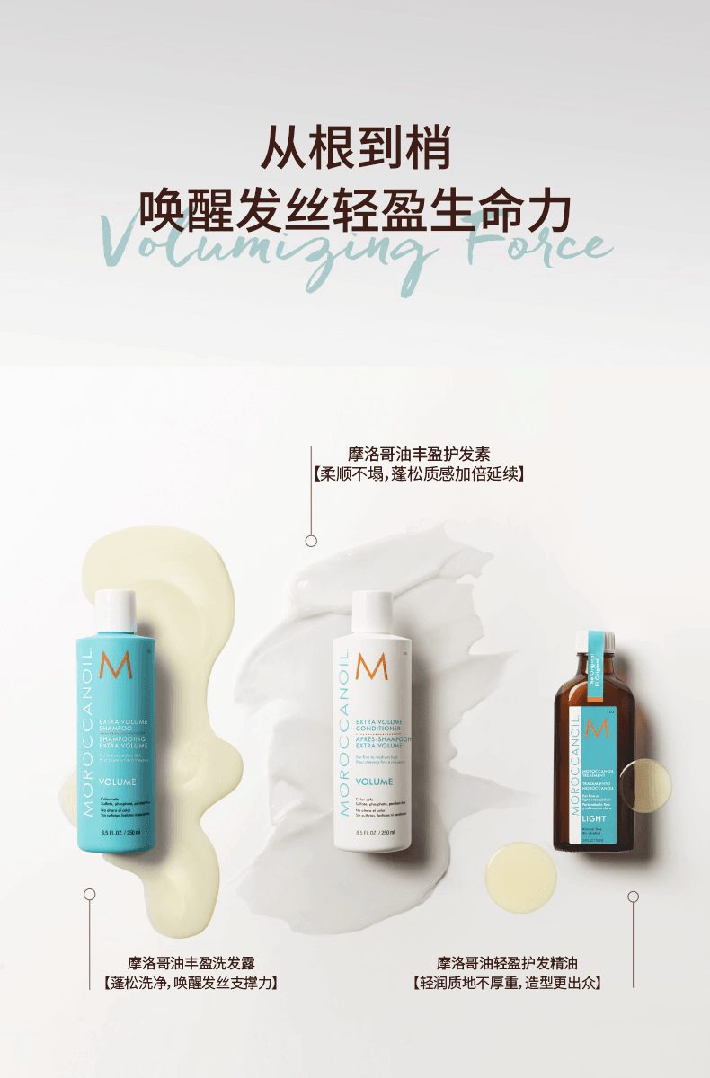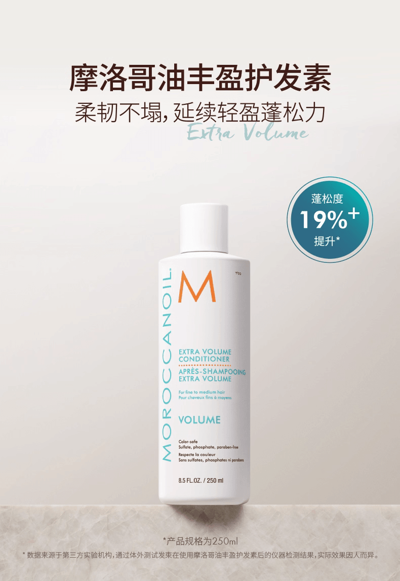 摩洛哥油丰盈护发素专为细软、无力、缺乏蓬松感的发质设计。其轻盈滋养的配方蕴含摩洛哥坚果油与抗氧化成分,能够温和滋润发丝而不造成负担,帮助增加发量感与丰盈度,让头发更有层次与动感,同时保持顺滑与光泽。