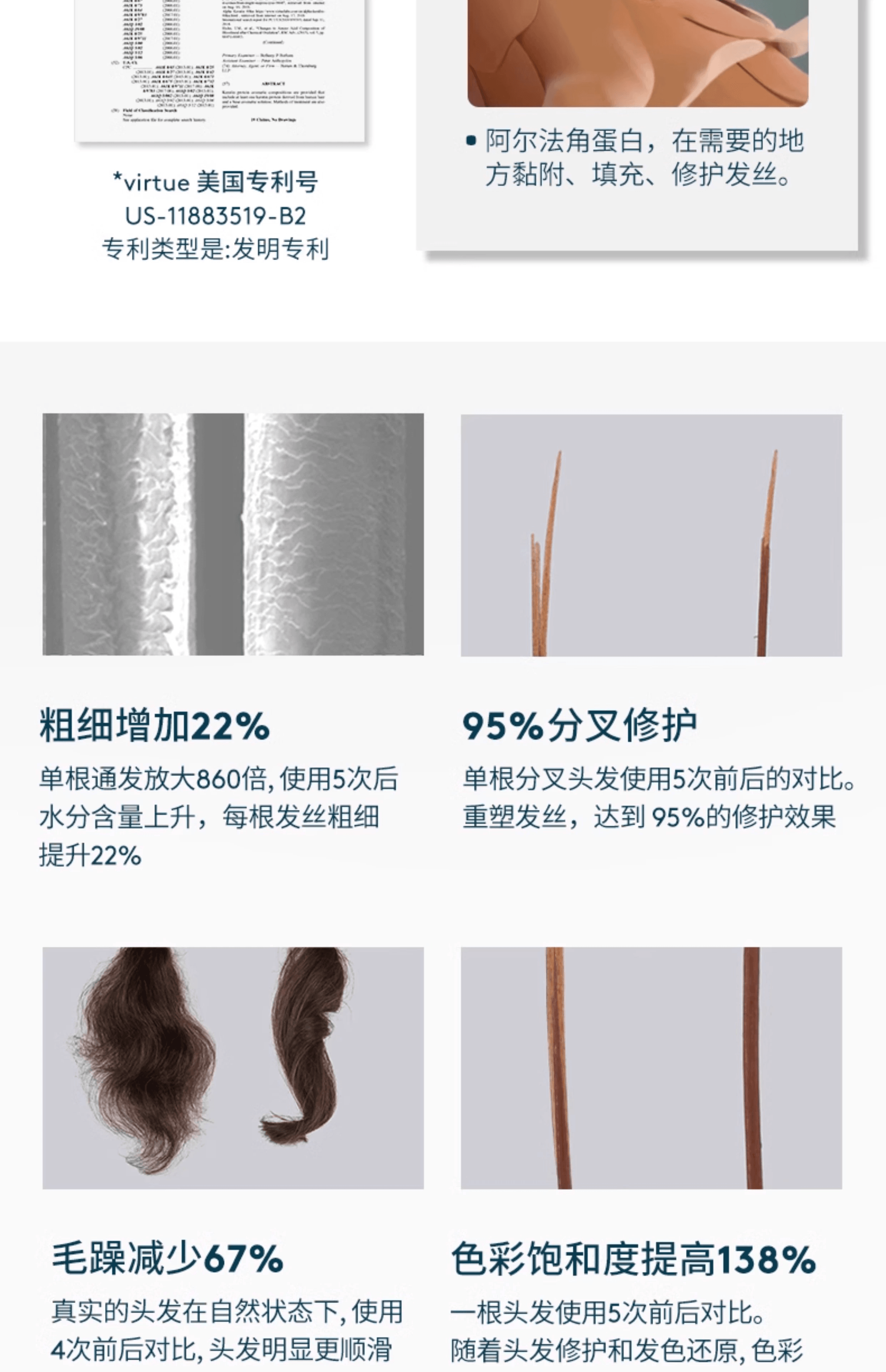 Virtue Purifying Shampoo 专为深层清洁与头皮护理而设计,能够温和有效地去除头皮与发丝上的多余油脂、造型残留及环境污染物,同时保持头皮与发丝的水分平衡。配方富含专利 Alpha Keratin 60ku® 完整角蛋白,帮助修护受损发丝结构并提升发质韧性。其轻盈配方不会造成厚重感,非常适合每周定期使用,让头皮焕然清爽、秀发轻盈健康。